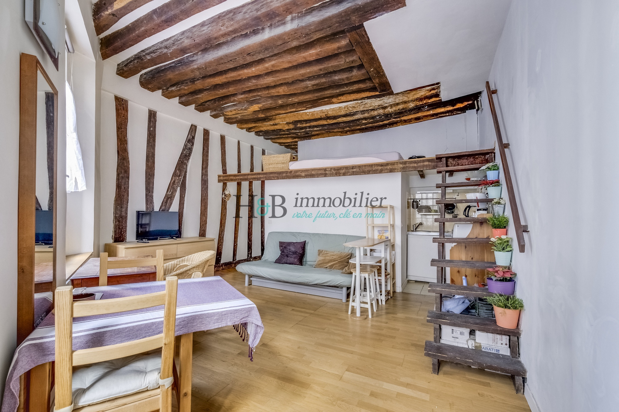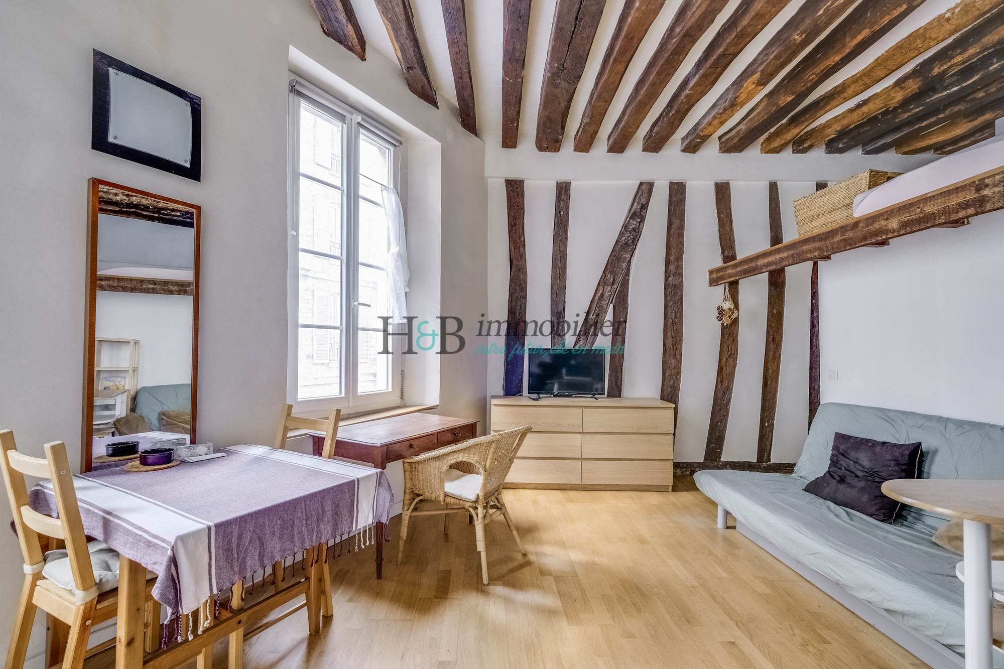 EXCLUSIVITÉ - Idéal investisseur, primo-accédant ou pied-à-terre - Le Groupe H&B Immobilier vous présente ce studio avec chambre en mezzanine de 27,5 m² Loi Carrez (31 m² pondérés / 36,4 m² au sol), situé au 1er étage (sur rue) d’un immeuble de caractère datant de la Révolution Française - CALME en ENSOLEILLÉ, avec un faible vis-à-vis - exposition SUD-OUEST.