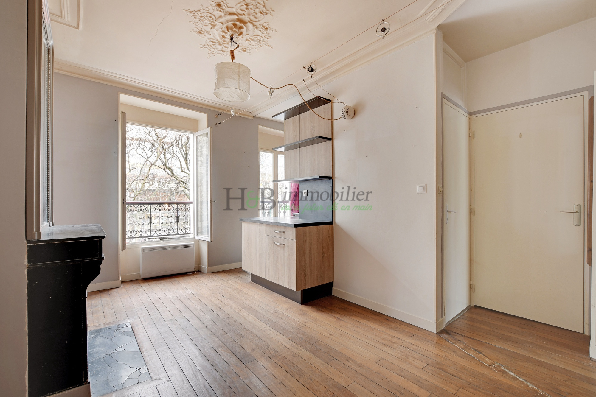 Le groupe H&B IMMOBILIER a le plaisir de vous proposer ce charmant deux pièces, parquet, moulure, cheminée, d'une surface de 34,23 m2 carrez, situé au 1er étage d'un immeuble de 1950.